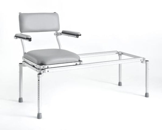 Innovative sliding transfer systems for bathtubs and open showers. These allow safe and seamless movement from a wheelchair into the bathing area. Lightweight frames, corrosion-resistant tracks, and padded seats provide maximum comfort and reliability.