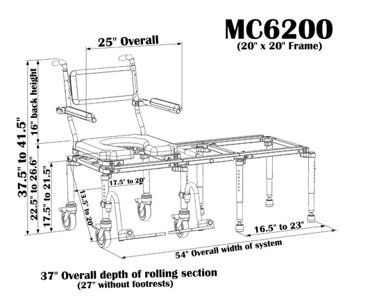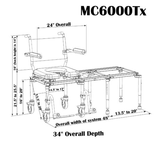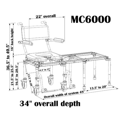 MC6000 Tub & Shower Slider System – Best-Selling 3-in-1 Commode, Transfer & Mobility Chair